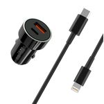 XO car charger TZ11 PD QC 20W 1x USB 1x USB-C black + cable USB-C - Lightning